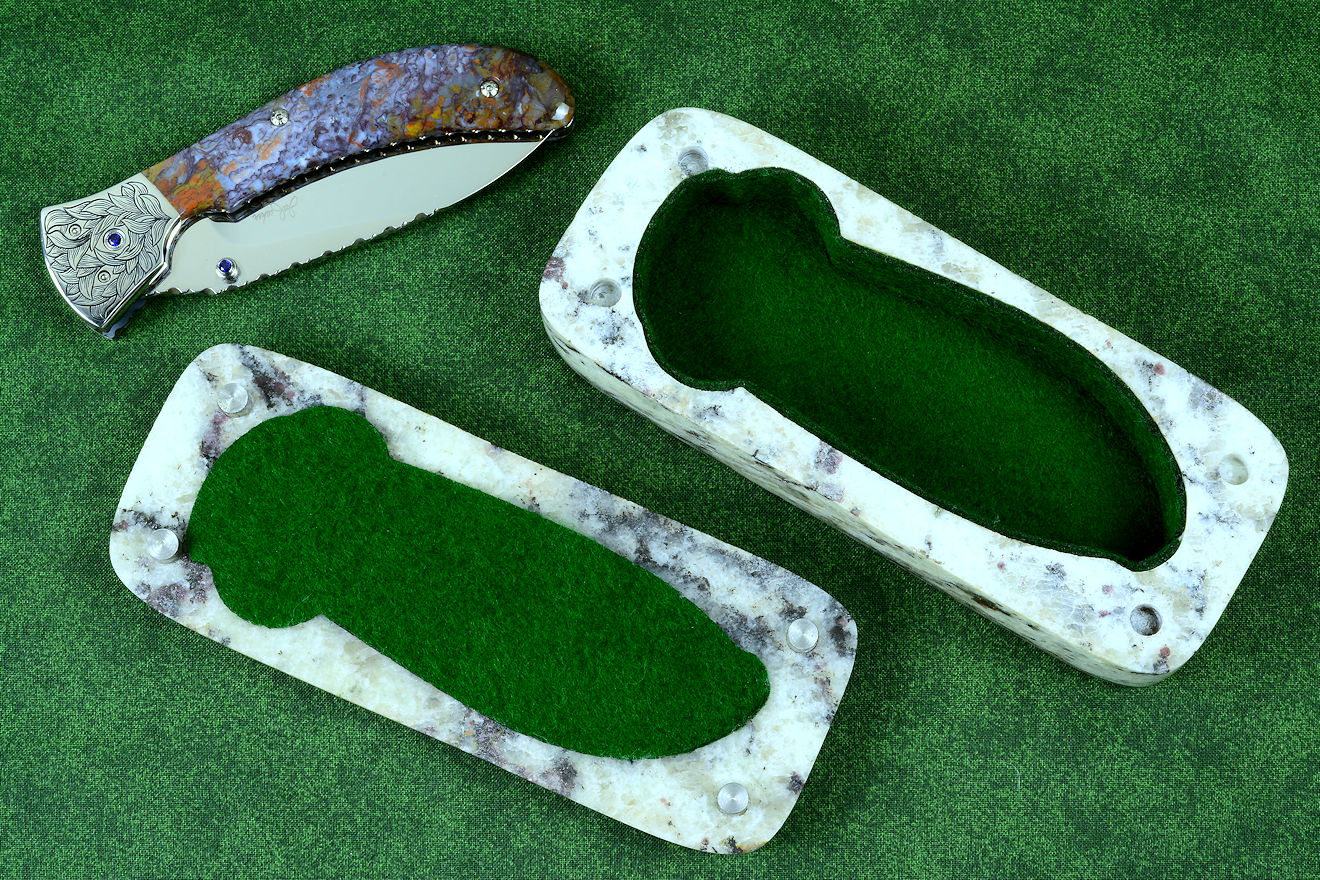 - In nature's most eternal and durable material, stone, the handle scales of this knife are