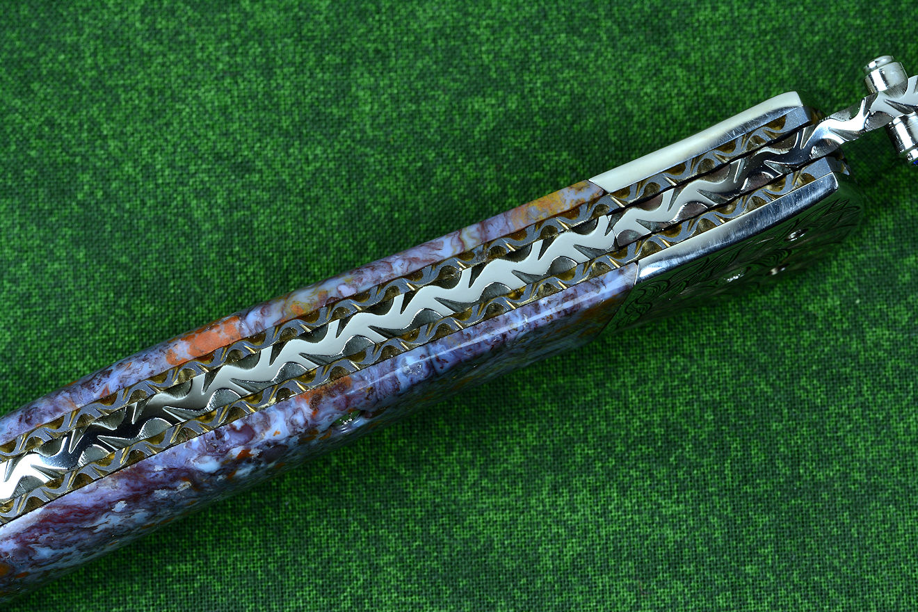 - Bolsters, Fittings: 304 Austenitic Stainless Steel, polished, hand-engraved